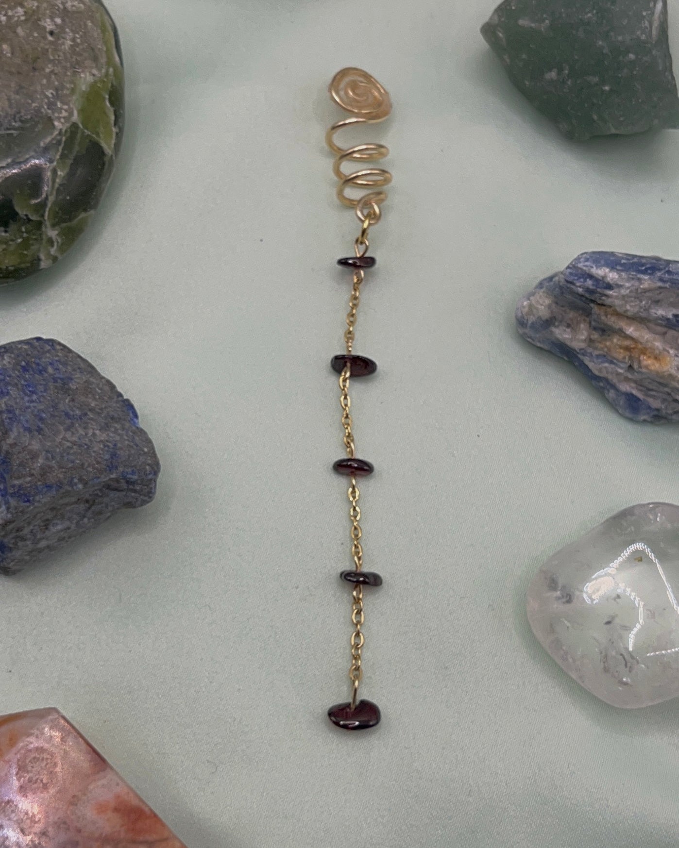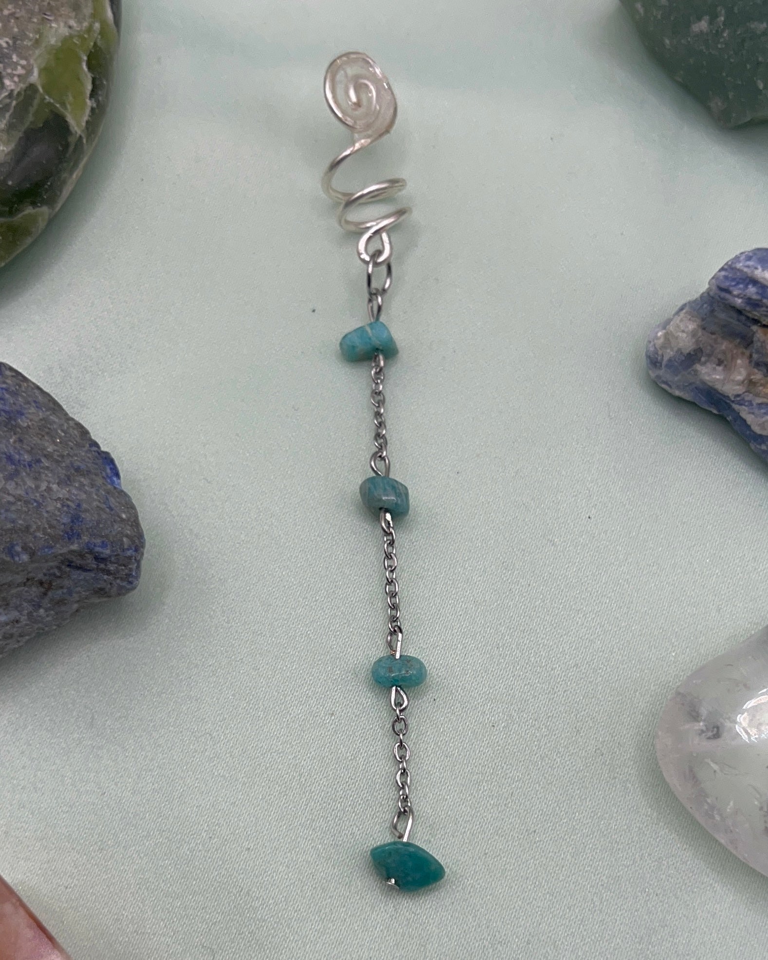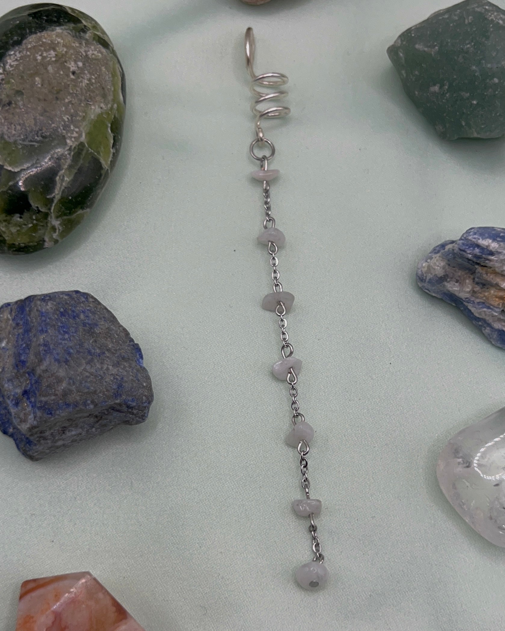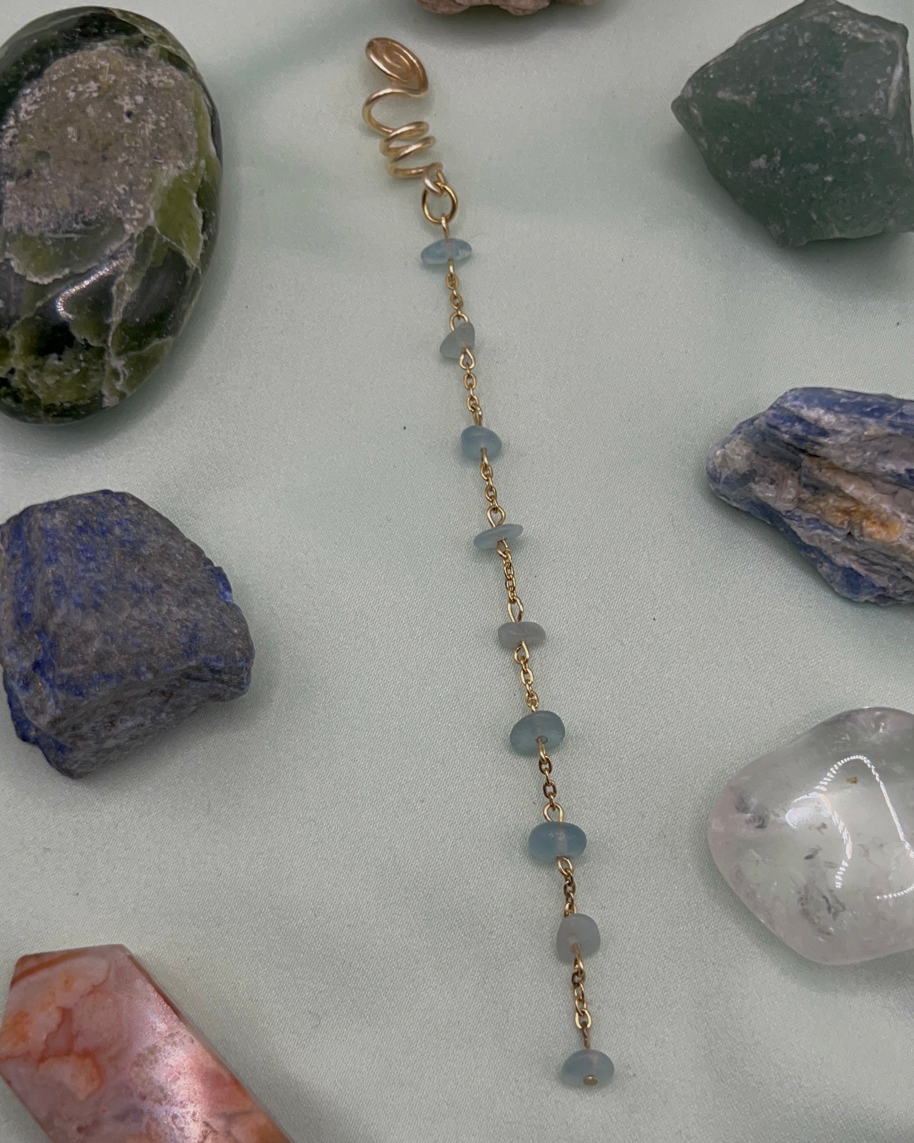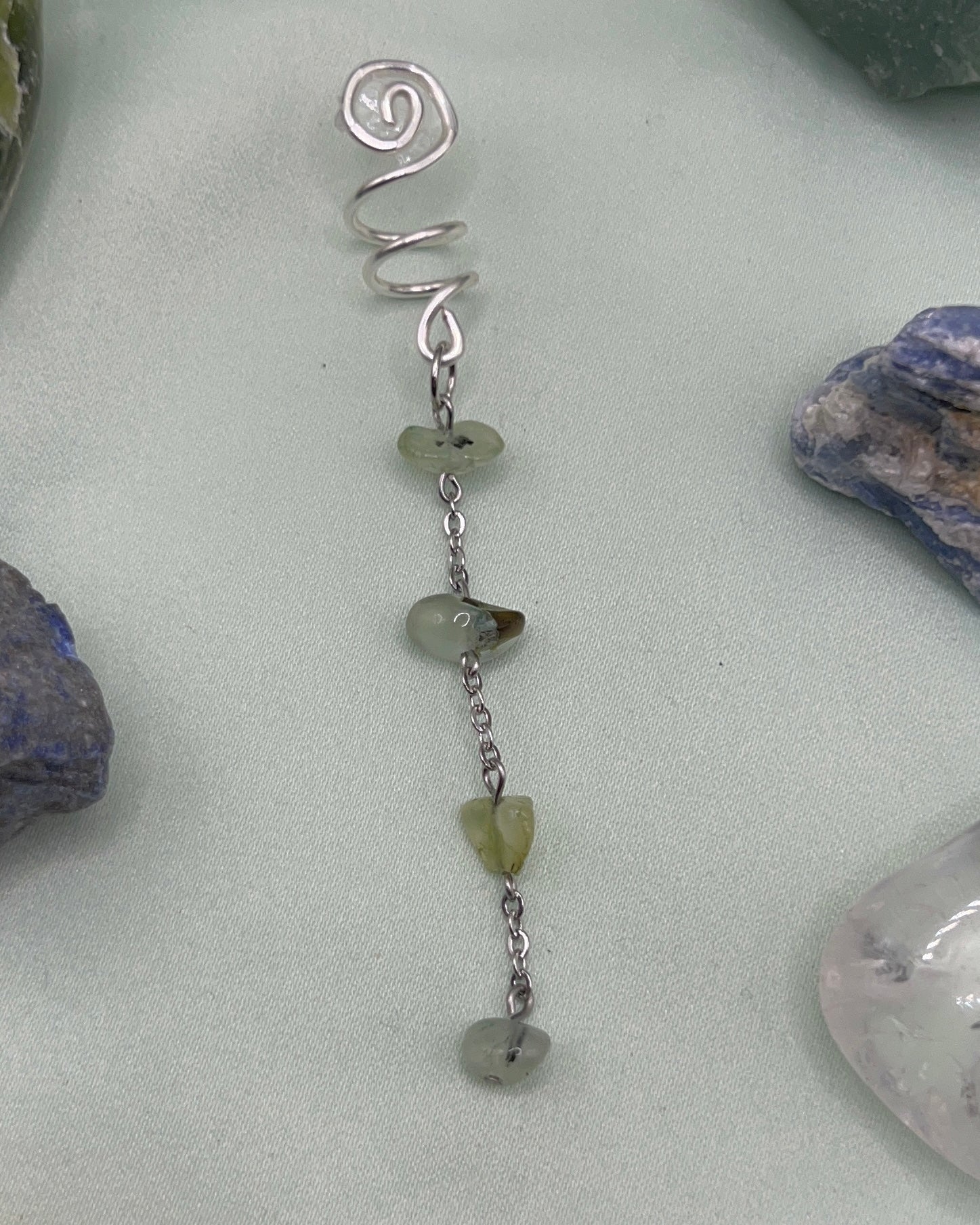 Hair charm made with crystal chips and chain. Made to order. Available in silver and gold plated.