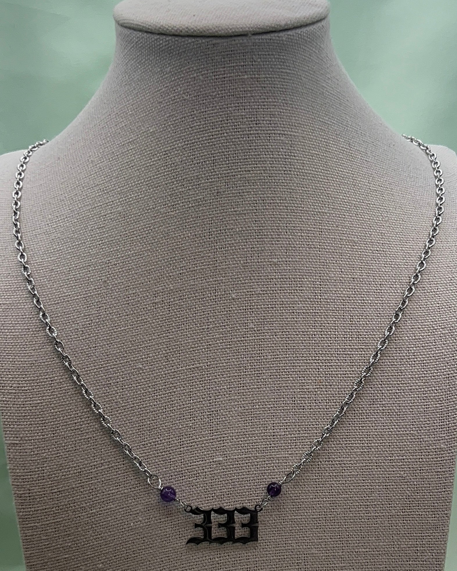 Necklace made with crystal beads and textured cable chain. Made to order. Choose your crystal. (Amethyst pictured)- Stainless Steel