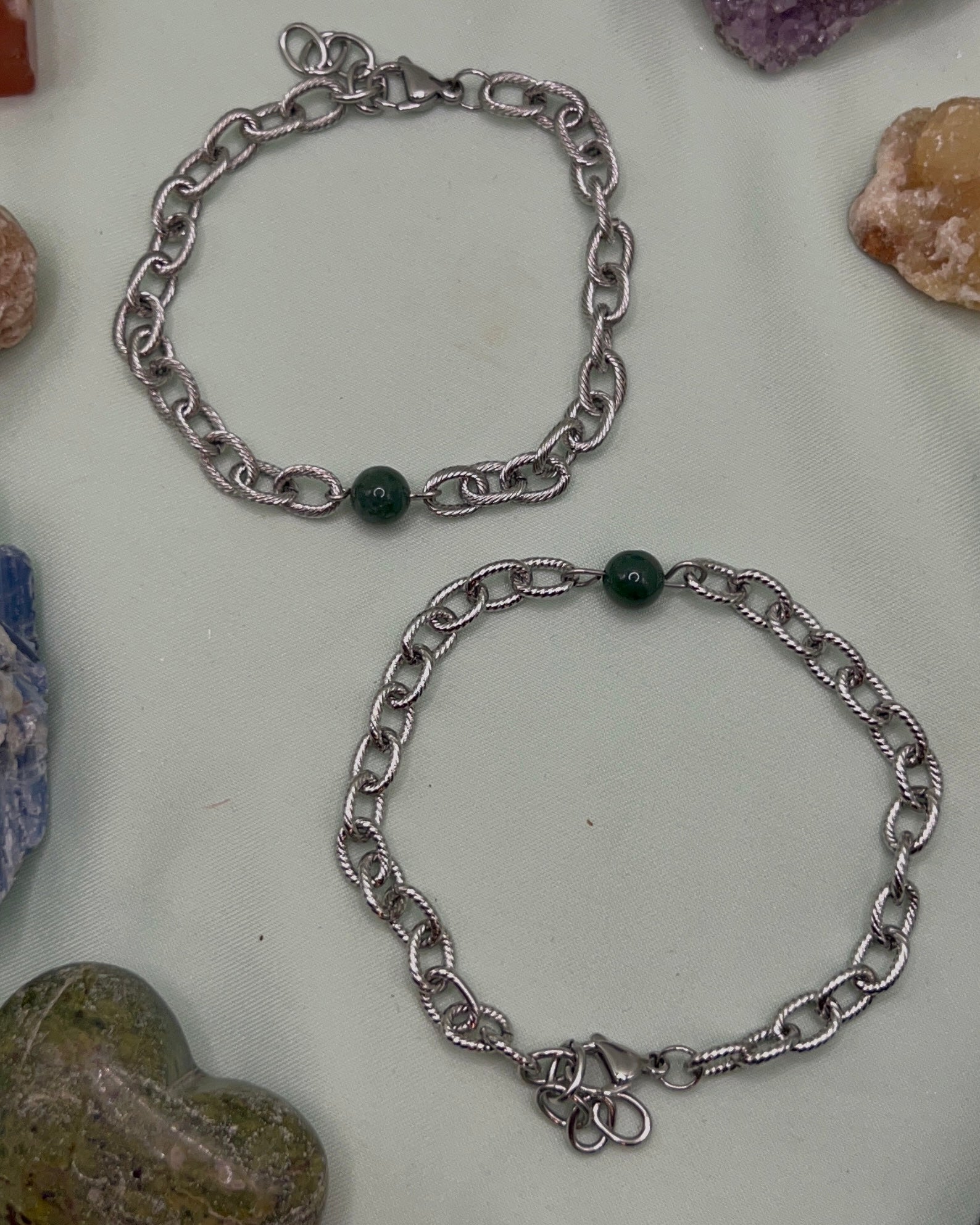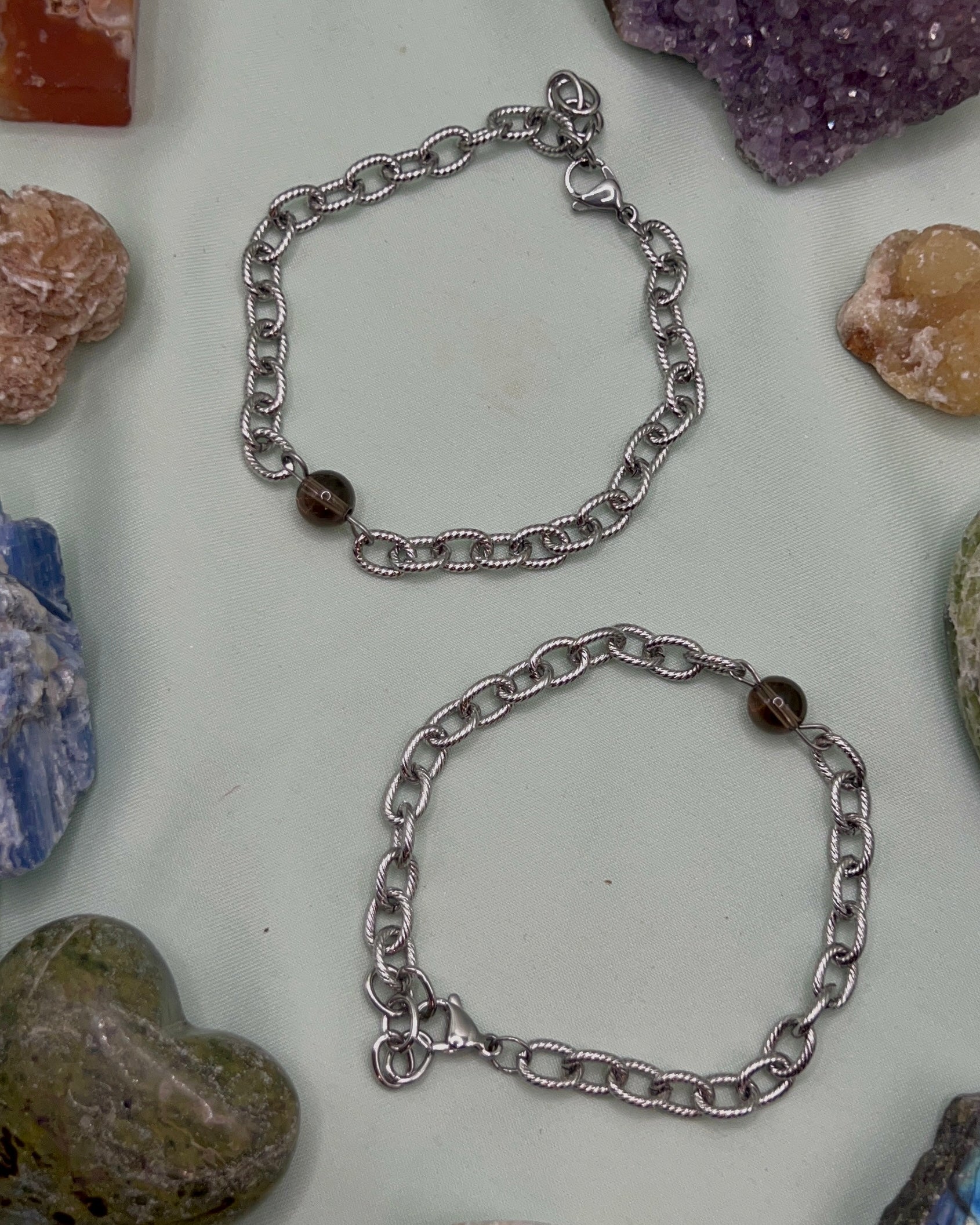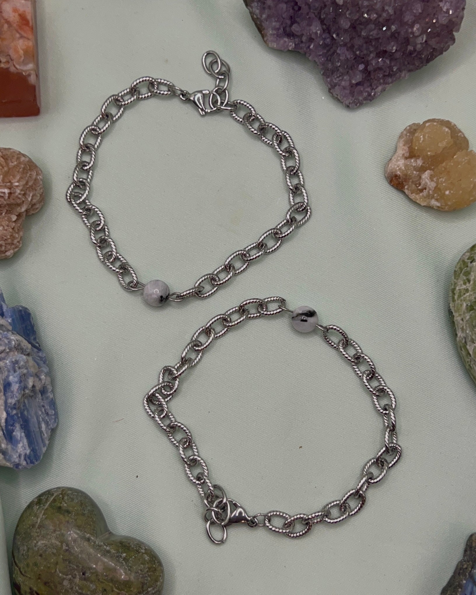 Bracelet made with a crystal bead and stainless steel. Made to order.