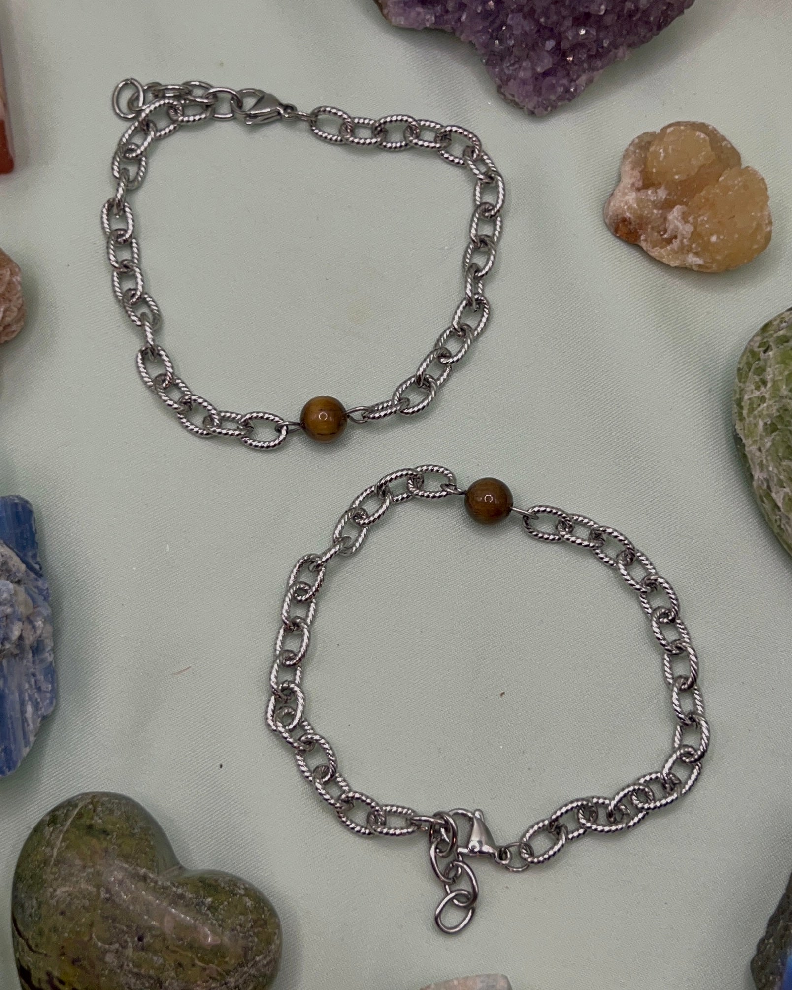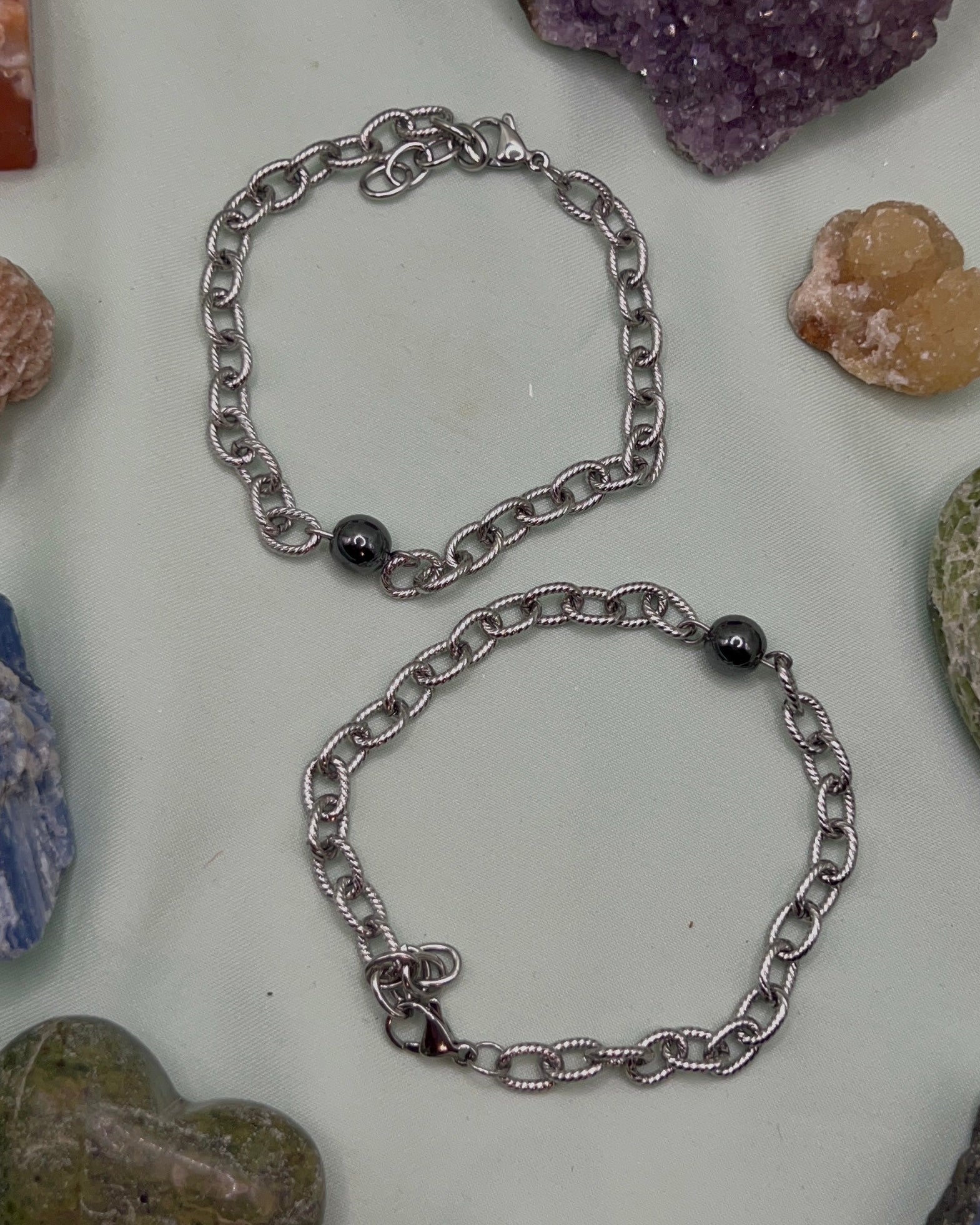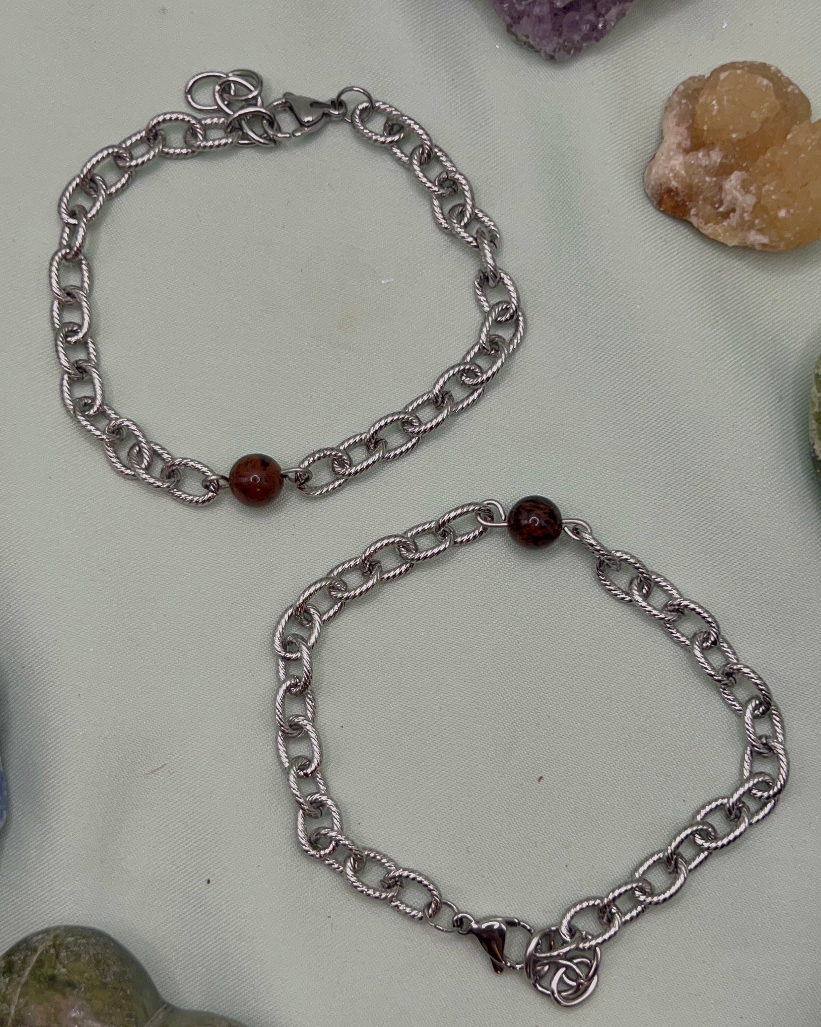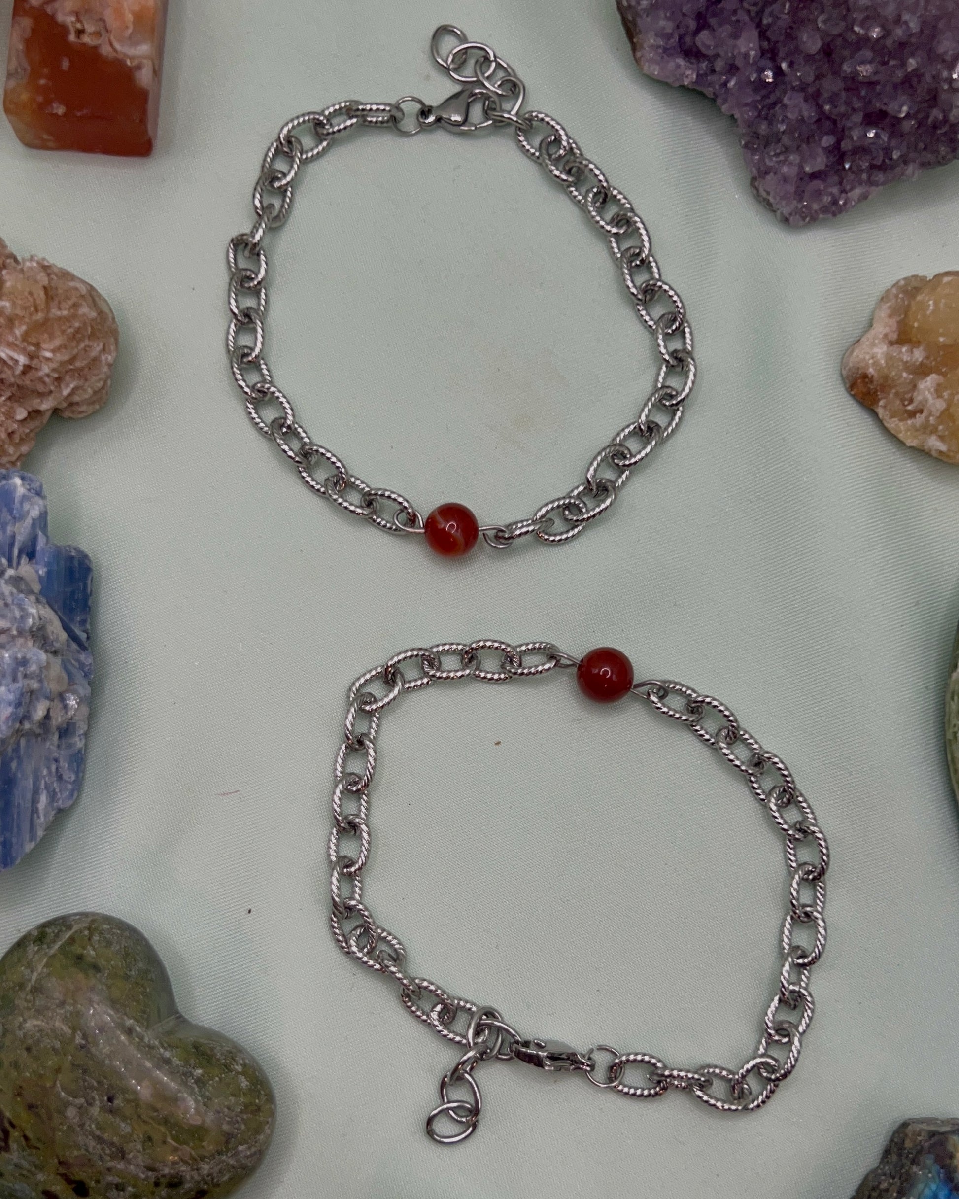Bracelet made with a crystal bead and stainless steel. Made to order.