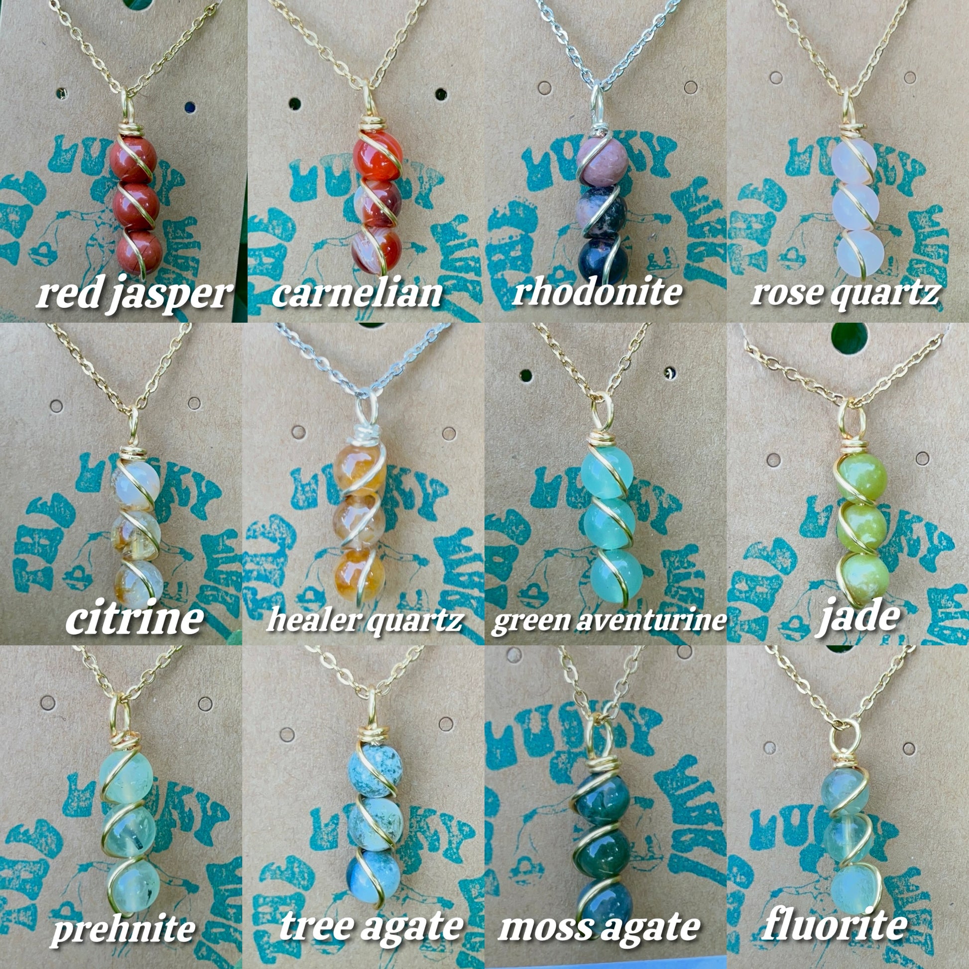 Beads used are natural crystals. Colors and patterns may vary bead to bead.