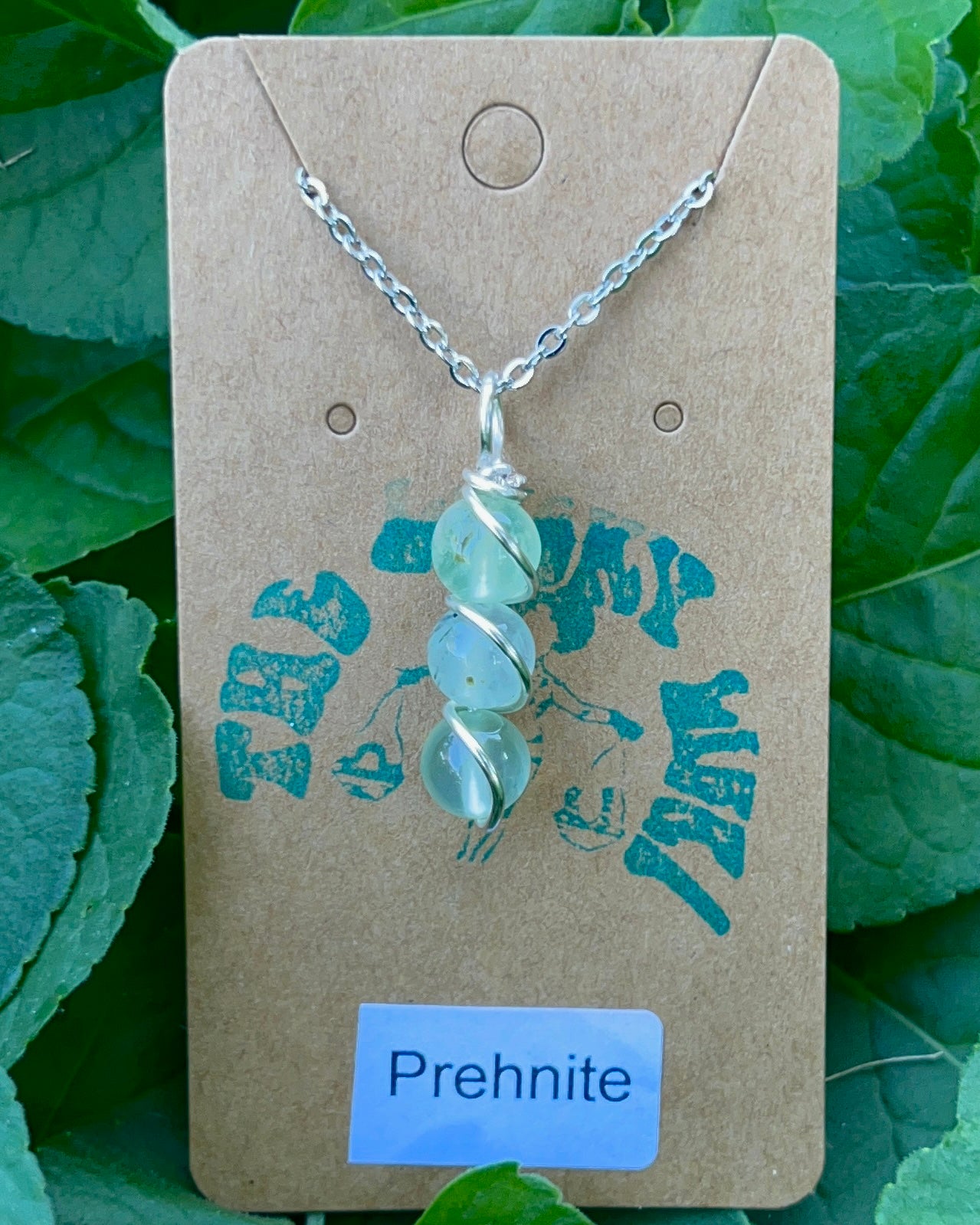 Wire wrapped crystal beads, hanging from an 18 inch chain. Made to order.